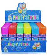 Party String 72ct Silly crazy party string is a huge party favor and promotes silly times for kids and adults. Non-flammable and CFC free. Sold in master cases of 72 cans. Ask about large discounts when buying in bulk. (more)