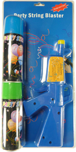 Big Party Blaster There is no better way to enjoy your party streamer than with this super fun blaster. You just slide a can of Silly Party String into the trigger operated blaster gun, then you are ready to blast your friends and foes into fits of laughter. Included with The Party String Blaster is 2 - 3oz cans of party streamer for your enjoyment. Without can blaster is 11" x 5" x 2"