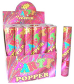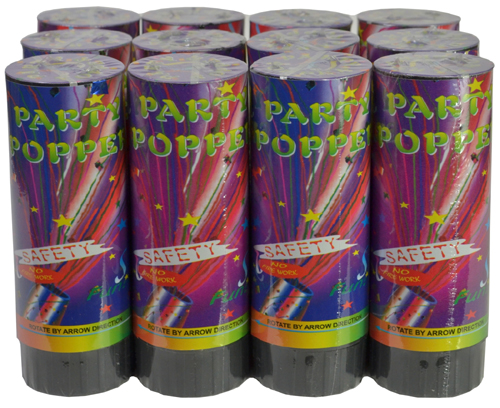 Party Popper 12 Inch 72ct This Confetti shooter uses compressed air to disperse color-assorted tissue confetti 5 to 8 meters (16 to 26 feet) into the air. (more)