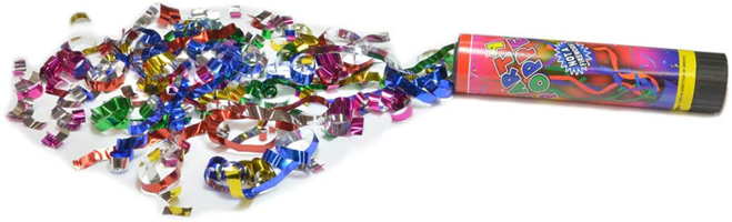 Party Popper 10 Inch 96ct Button Activation This Confetti shooter uses compressed air to disperse color-assorted foil confetti 5 to 8 meters (16 to 26 feet) into the air.